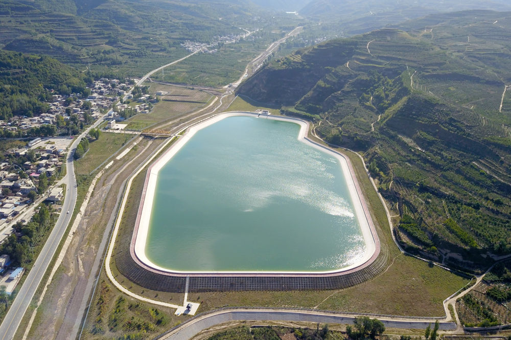 這是2021年9月8日在甘肅省天水市拍攝的引洮供水工程楊家灣調(diào)蓄水池(無(wú)人機(jī)照片)。新華社記者 范培珅 攝