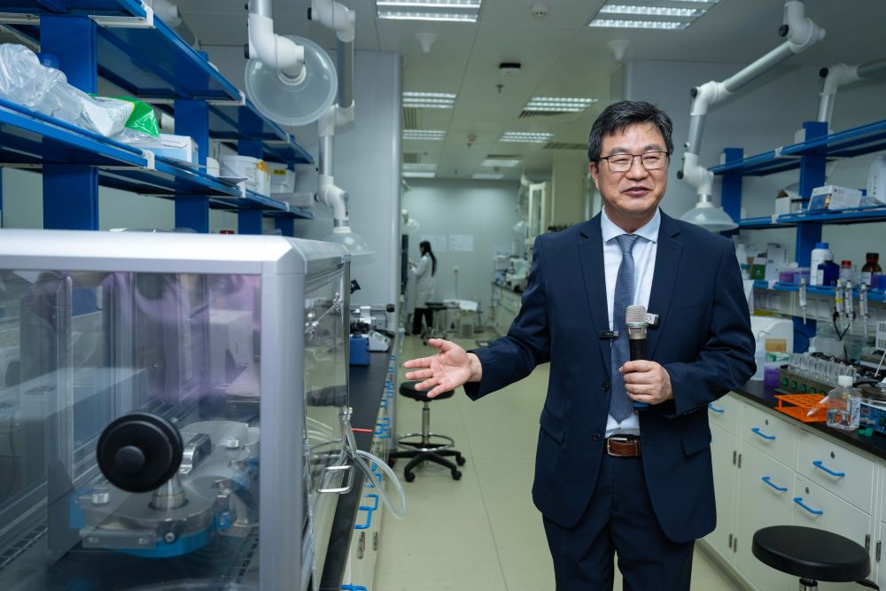 2024年6月17日,中藥質(zhì)量研究國家重點(diǎn)實(shí)驗(yàn)室(澳門大學(xué))主任、澳門大學(xué)中華醫(yī)藥研究院院長陳新介紹實(shí)驗(yàn)室情況。
