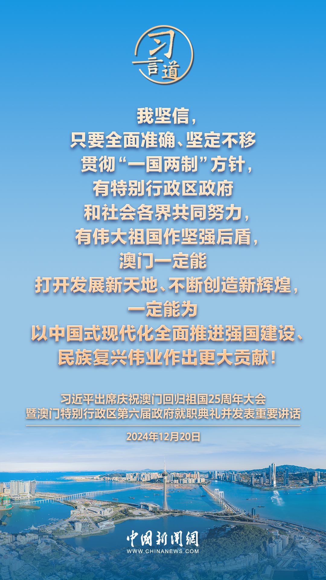 慶祝澳門回歸祖國25周年大會暨澳門特別行政區(qū)第六屆政府就職典禮20日在澳門東亞運動會體育館隆重舉行。中共中央總書記、國家主席、中央軍委主席習(xí)近平出席并發(fā)表重要講話,習(xí)近平指出——