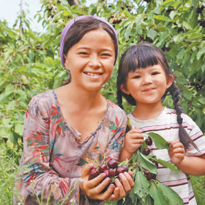 在中塔合建的吉薩爾櫻桃園,當?shù)匦∨⒄故緞傉碌臋烟?。本報記?顏歡攝