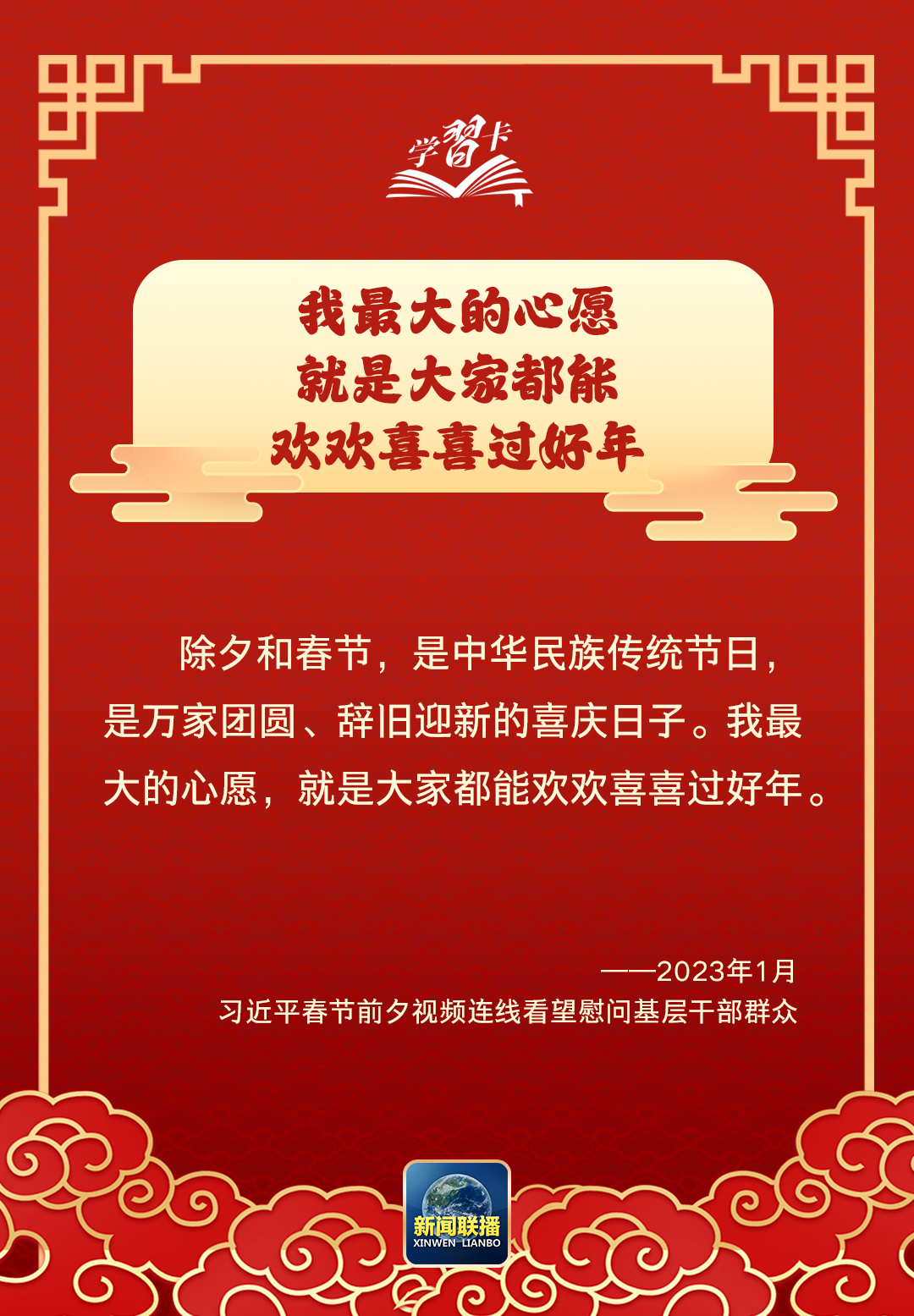 習近平總書記曾說:“我最大的心愿,就是大家都能歡歡喜喜過好年?!痹谶@辭舊迎新、萬家團圓之際,讓我們聆聽總書記的暖心話語,一起學(xué)習↓