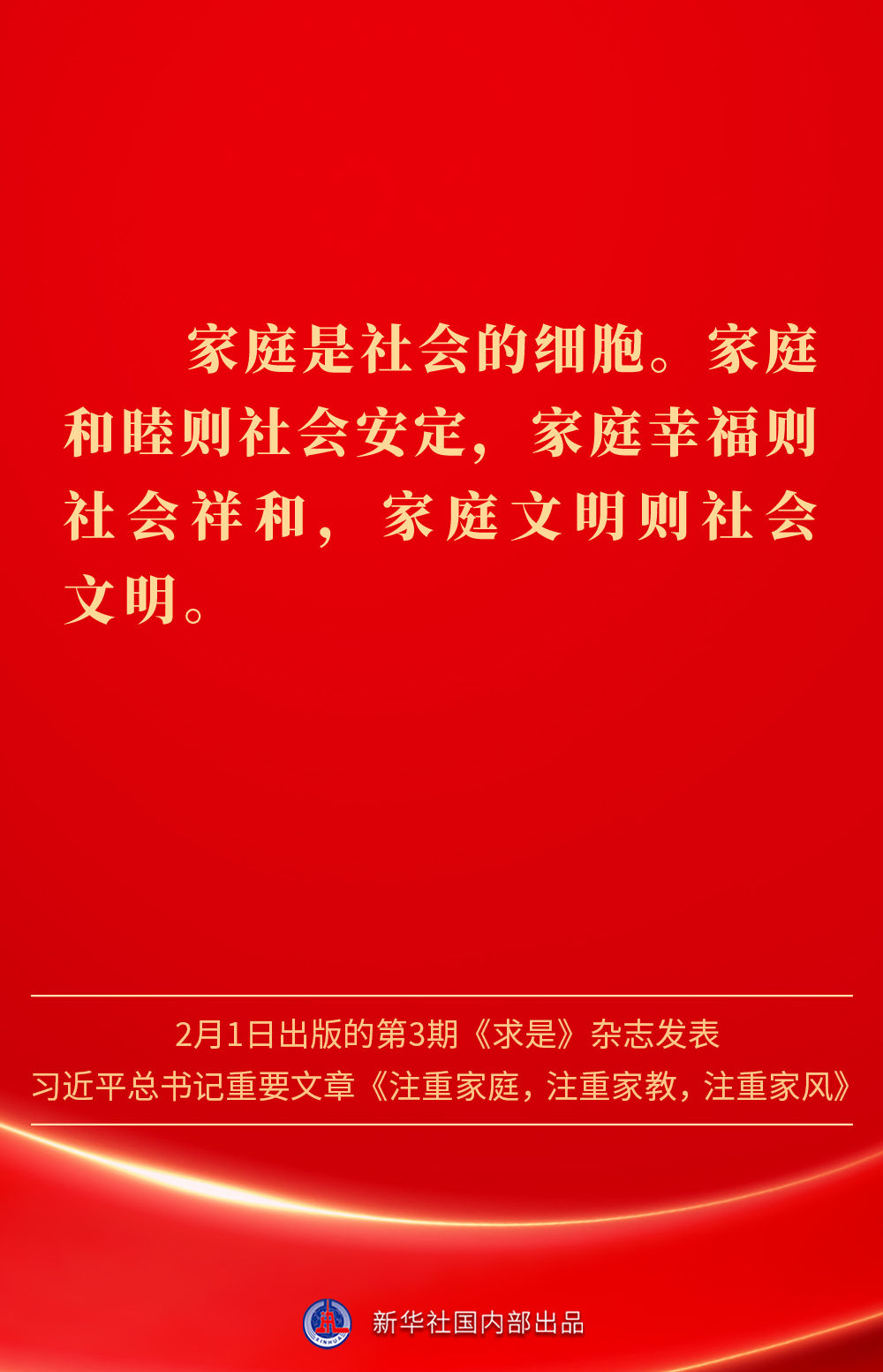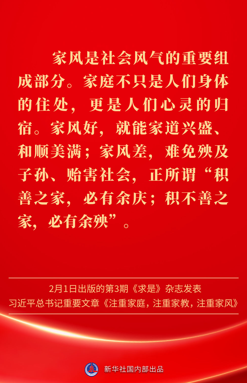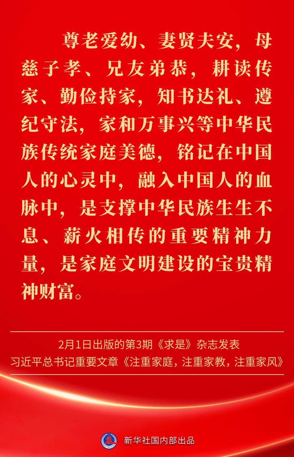 萬家團圓共慶新春佳節(jié)之際,2月1日出版的第3期《求是》雜志發(fā)表習近平總書記重要文章《注重家庭,注重家教,注重家風》。為什么要注重家庭、家教、家風?如何做好家庭文明建設(shè)?習近平總書記這樣闡述——
