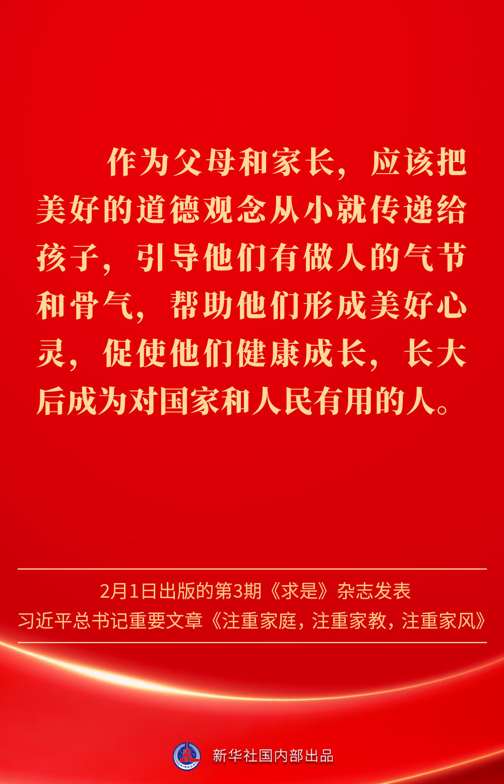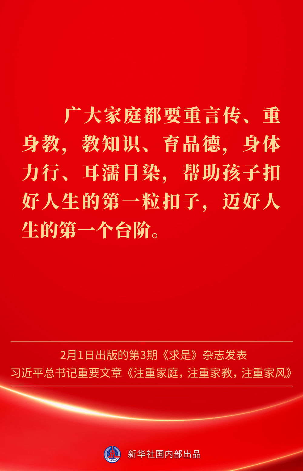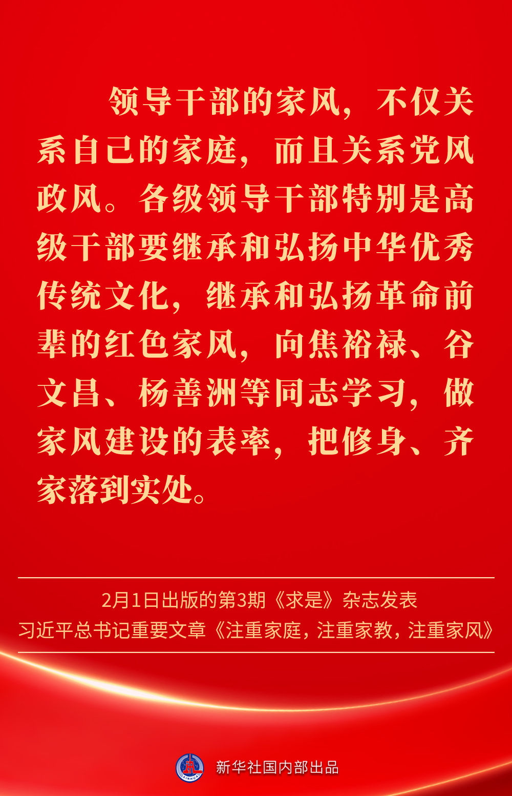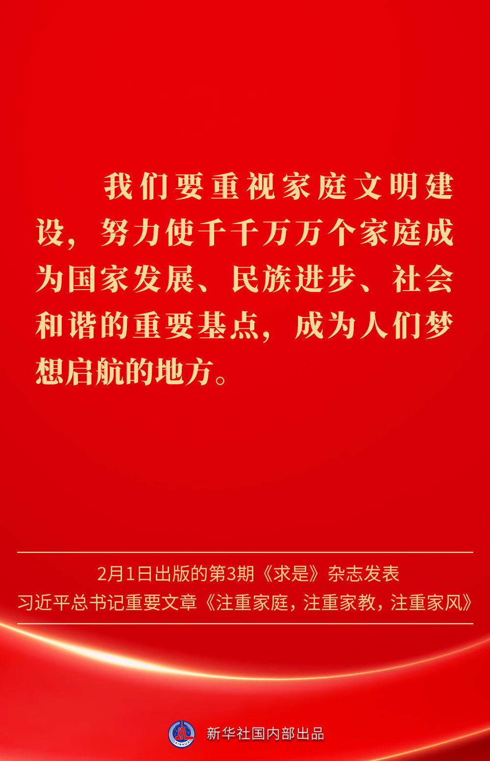 萬家團圓共慶新春佳節(jié)之際,2月1日出版的第3期《求是》雜志發(fā)表習近平總書記重要文章《注重家庭,注重家教,注重家風》。為什么要注重家庭、家教、家風?如何做好家庭文明建設(shè)?習近平總書記這樣闡述——