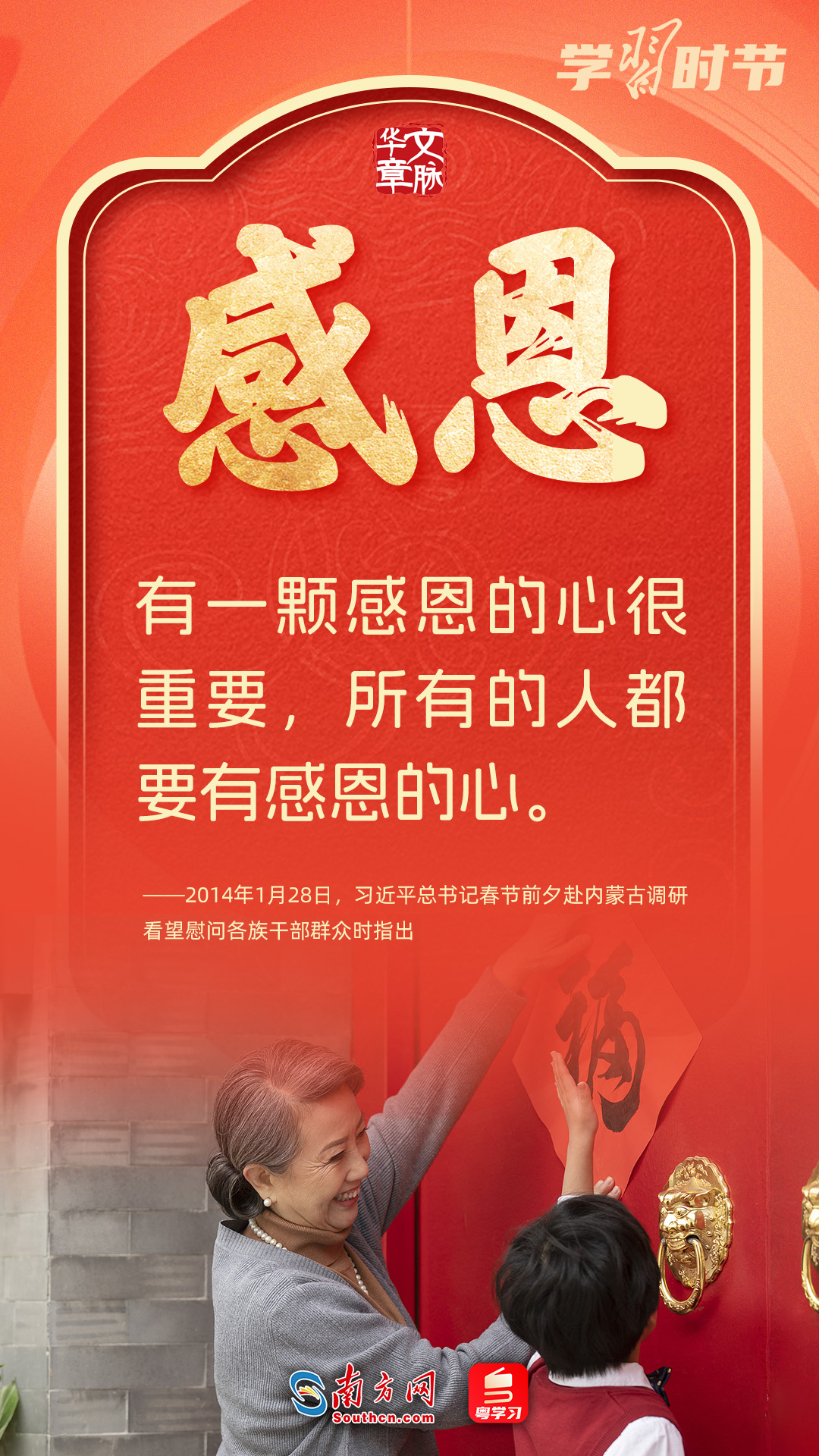 習(xí)近平總書記強(qiáng)調(diào),要把優(yōu)秀傳統(tǒng)文化的精神標(biāo)識提煉出來、展示出來,把優(yōu)秀傳統(tǒng)文化中具有當(dāng)代價值、世界意義的文化精髓提煉出來、展示出來。在這新春佳節(jié)里,讓我們重溫總書記的殷切寄語,感悟春節(jié)中蘊(yùn)含的中華民族“精神密碼”。