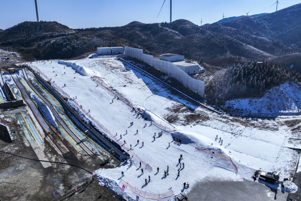 2025年1月11日,人們在成都市大邑縣西嶺雪山雪場滑雪(無人機照片)。現(xiàn)今四川擁有近50個冰雪旅游區(qū),重點滑雪場16家。省內(nèi)一些地區(qū)還設有室內(nèi)冰雪場、旱雪場,讓滑雪愛好者全年都能享受“雪上”樂趣。