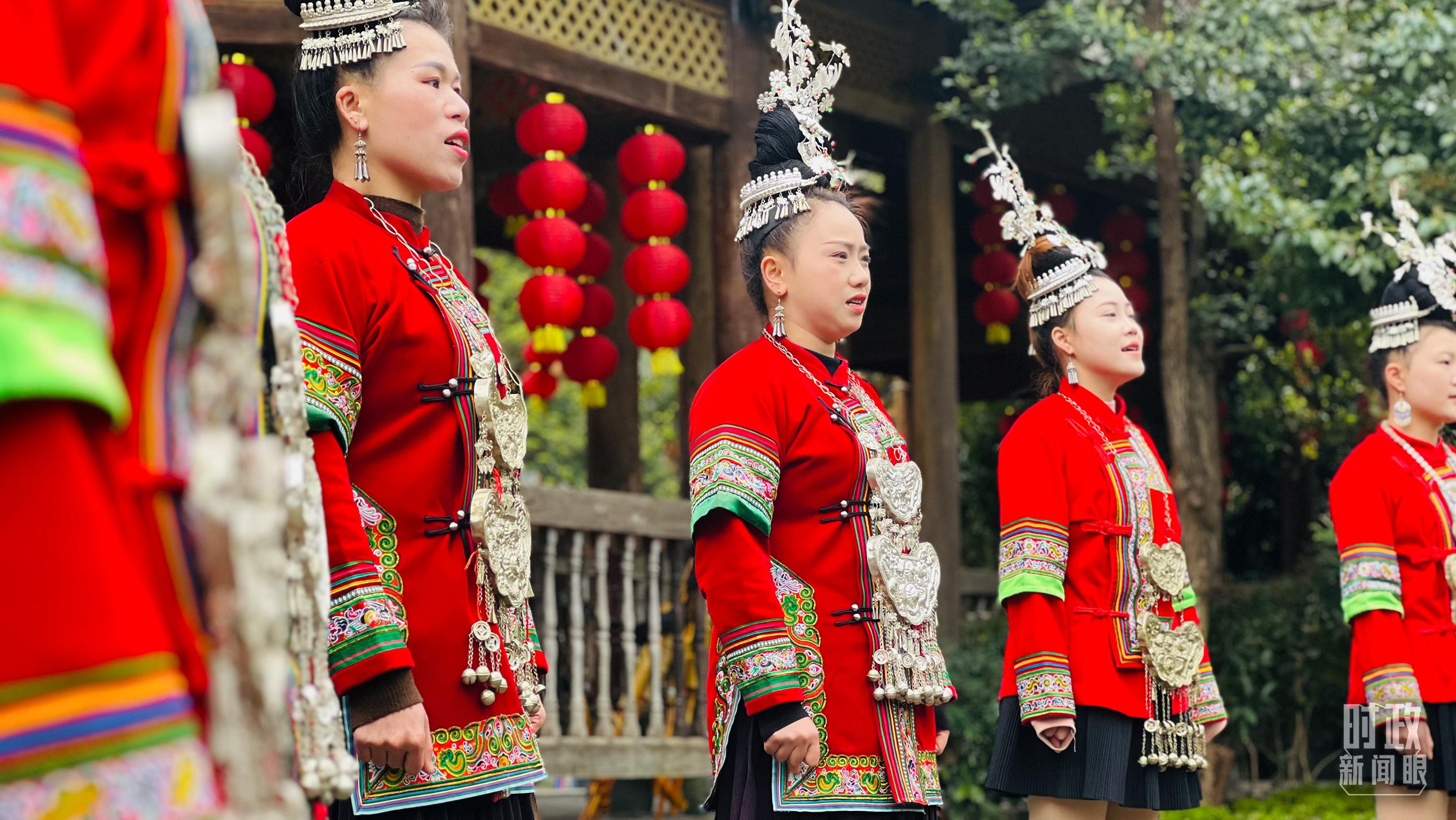 寨門處,鄉(xiāng)親們身著傳統(tǒng)服飾,唱起侗族大歌,歡迎遠方的來客。(總臺央視記者范凱拍攝)