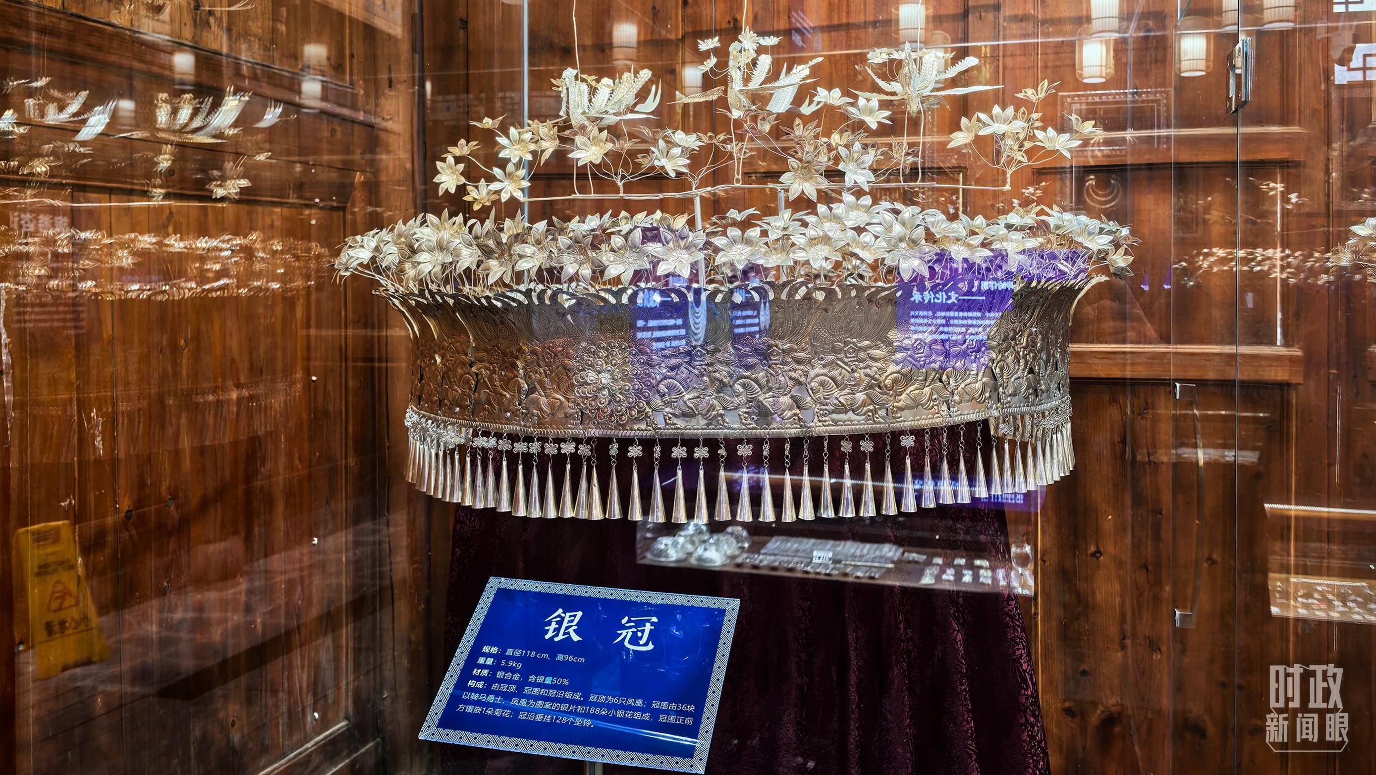 銀飾是侗族婦女的重要裝飾。圖為展示中心內的銀冠。(總臺央視記者鄂介甫拍攝)