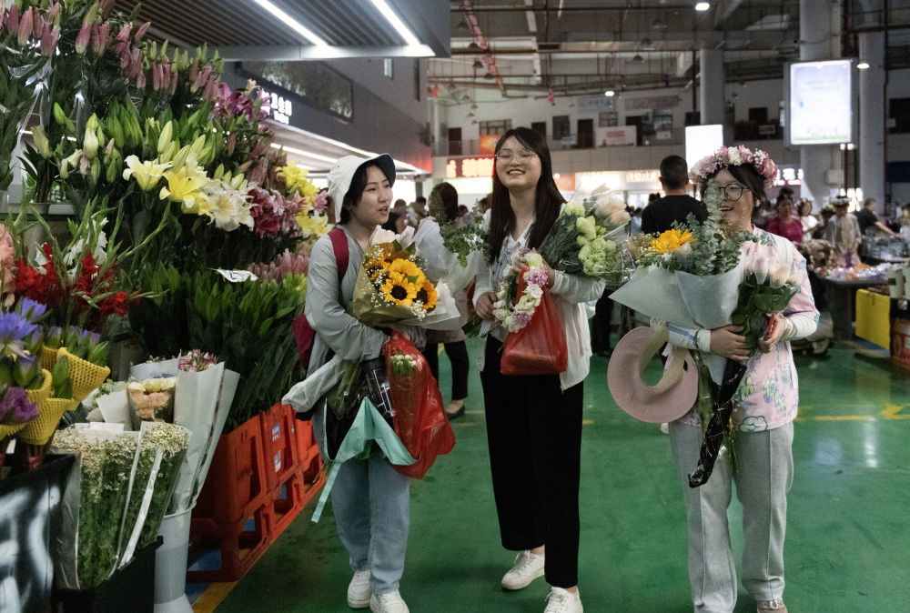 2023年7月13日,游客在昆明斗南花卉市場內(nèi)購買鮮花。