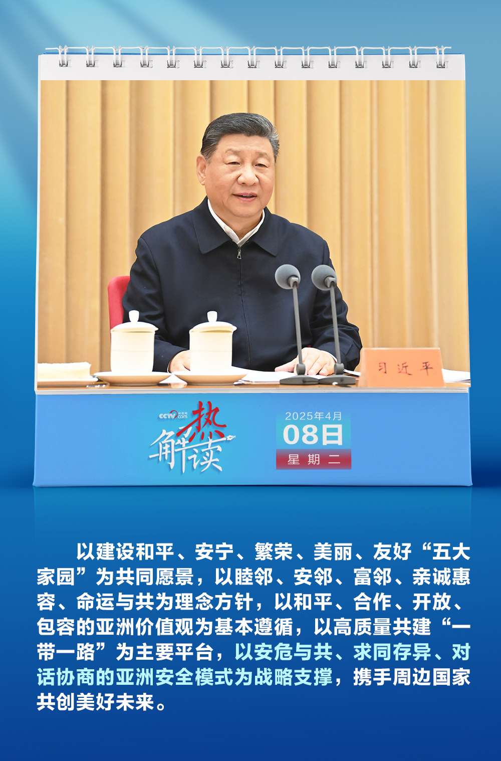 4月8日至9日,中央周邊工作會議在北京舉行,中共中央總書記、國家主席、中央軍委主席習近平出席并發(fā)表重要講話。此次會議對我國未來周邊工作作出重要部署,并首次提出“亞洲安全模式”。