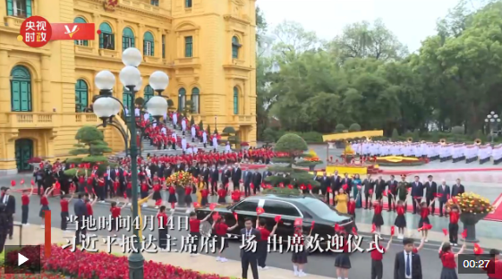 4月14日,中共中央總書記、國家主席習(xí)近平抵達河內(nèi)對越南進行國事訪問。當(dāng)日下午,越共中央總書記蘇林為習(xí)近平舉行隆重歡迎儀式。