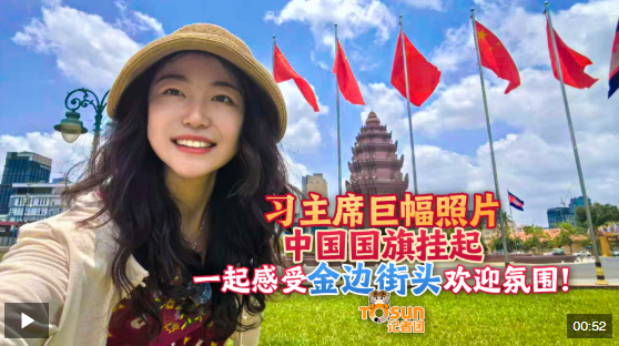 ToSun記者團(tuán)發(fā)現(xiàn)金邊街頭各處陸續(xù)懸掛起中國國旗和習(xí)主席巨幅照片。一起來感受當(dāng)?shù)貧g迎氛圍!