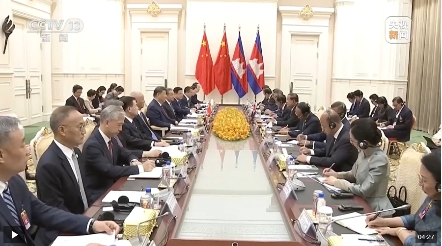 習(xí)近平指出,中柬兩國是友好鄰邦,更是鐵桿朋友。構(gòu)建中柬命運共同體是歷史的選擇、人民的選擇。當前,中柬兩國都處在國家發(fā)展的關(guān)鍵階段,雙方要心系人民福祉,胸懷人類進步,在推進各自現(xiàn)代化進程中,為構(gòu)建人類命運共同體樹立典范,攜手做世界百年變局中的和平力量、穩(wěn)定力量、進步力量。