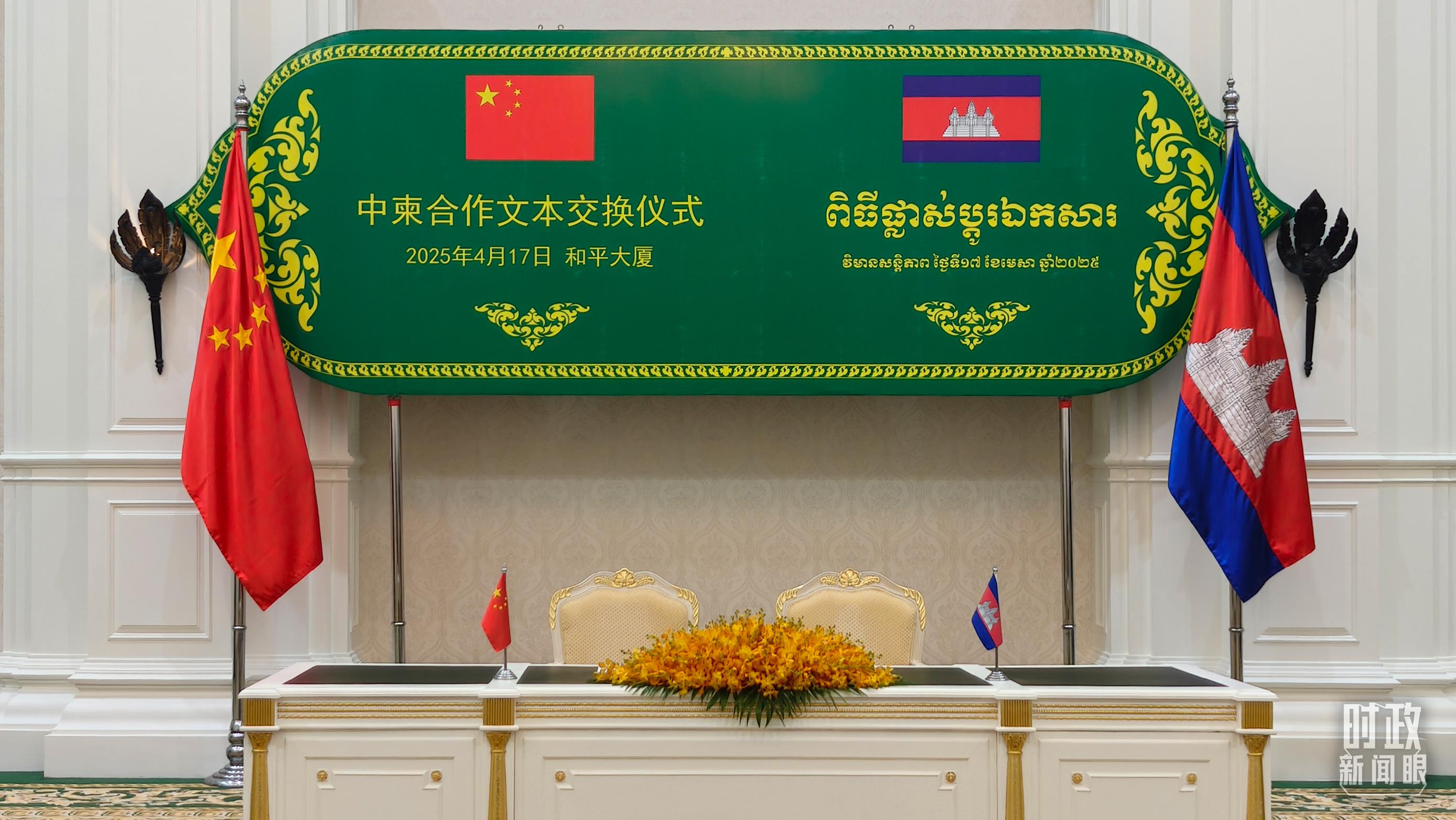 中柬合作文本交換儀式現(xiàn)場。(總臺(tái)央視記者楊立峰拍攝)