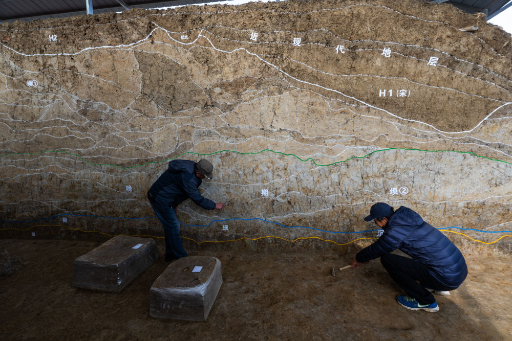 2023年12月4日,考古人員在湖北荊門屈家?guī)X遺址熊家?guī)X水壩現(xiàn)場工作。屈家?guī)X遺址是屈家?guī)X文化的發(fā)現(xiàn)地和命名地,地處大洪山南麓向江漢平原的過渡地帶,是實證長江中游文明起源的重要大遺址。