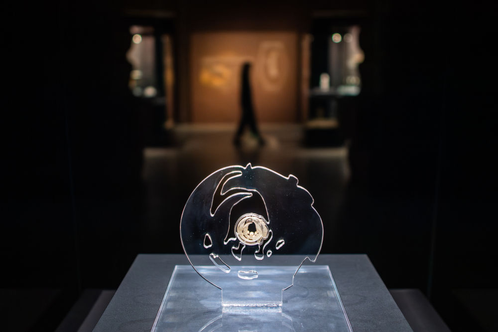 在武漢盤龍城遺址博物院拍攝的玉團(tuán)鳳(2024年3月30日攝)。1955年,玉團(tuán)鳳于湖北天門石家河遺址出土,造型秀美,線條遒勁流暢,被譽為“中華第一鳳”。石家河遺址距今約5000年,是長江中游同期規(guī)模最大的聚落。
