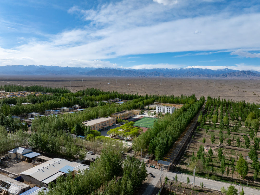 這是4月23日在新疆克州阿圖什市哈拉峻鄉(xiāng)拍攝的謝依特小學(xué)(無人機(jī)照片)。