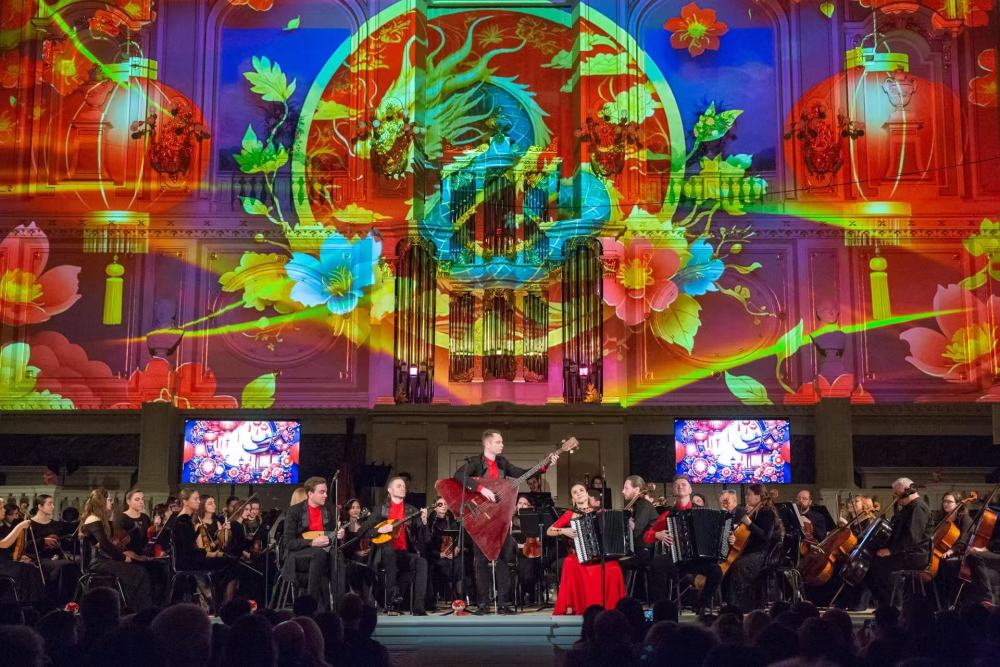 2019年11月13日,在俄羅斯圣彼得堡卡貝拉音樂廳,上海民族樂團(tuán)與安德烈耶夫國立模范民族樂團(tuán)的藝術(shù)家共同為觀眾獻(xiàn)上了一場名為《海上生民樂·和平頌》的精彩音樂會,開啟了上海民族樂團(tuán)2019俄羅斯巡演之旅。