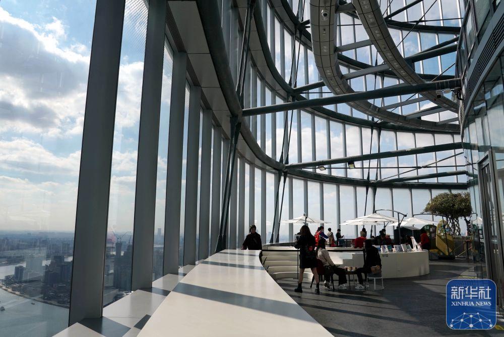 2020年11月12日拍攝的朵云書(shū)院觀景臺(tái)。有“云端書(shū)店”之稱的朵云書(shū)院位于上海中心大廈52層。顧客在這里可以“抬頭看云,低頭讀書(shū)”,并俯瞰黃浦江兩岸美景。