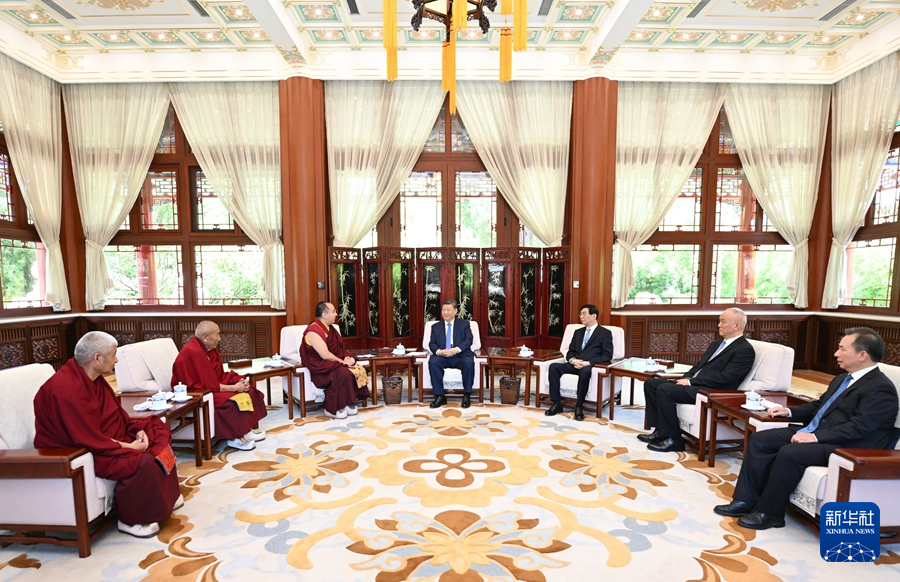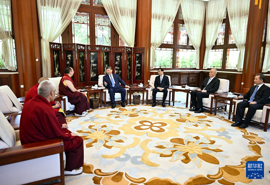 6月6日,中共中央總書記、國(guó)家主席、中央軍委主席習(xí)近平在北京中南海接受班禪額爾德尼·確吉杰布拜見。新華社記者 燕雁 攝