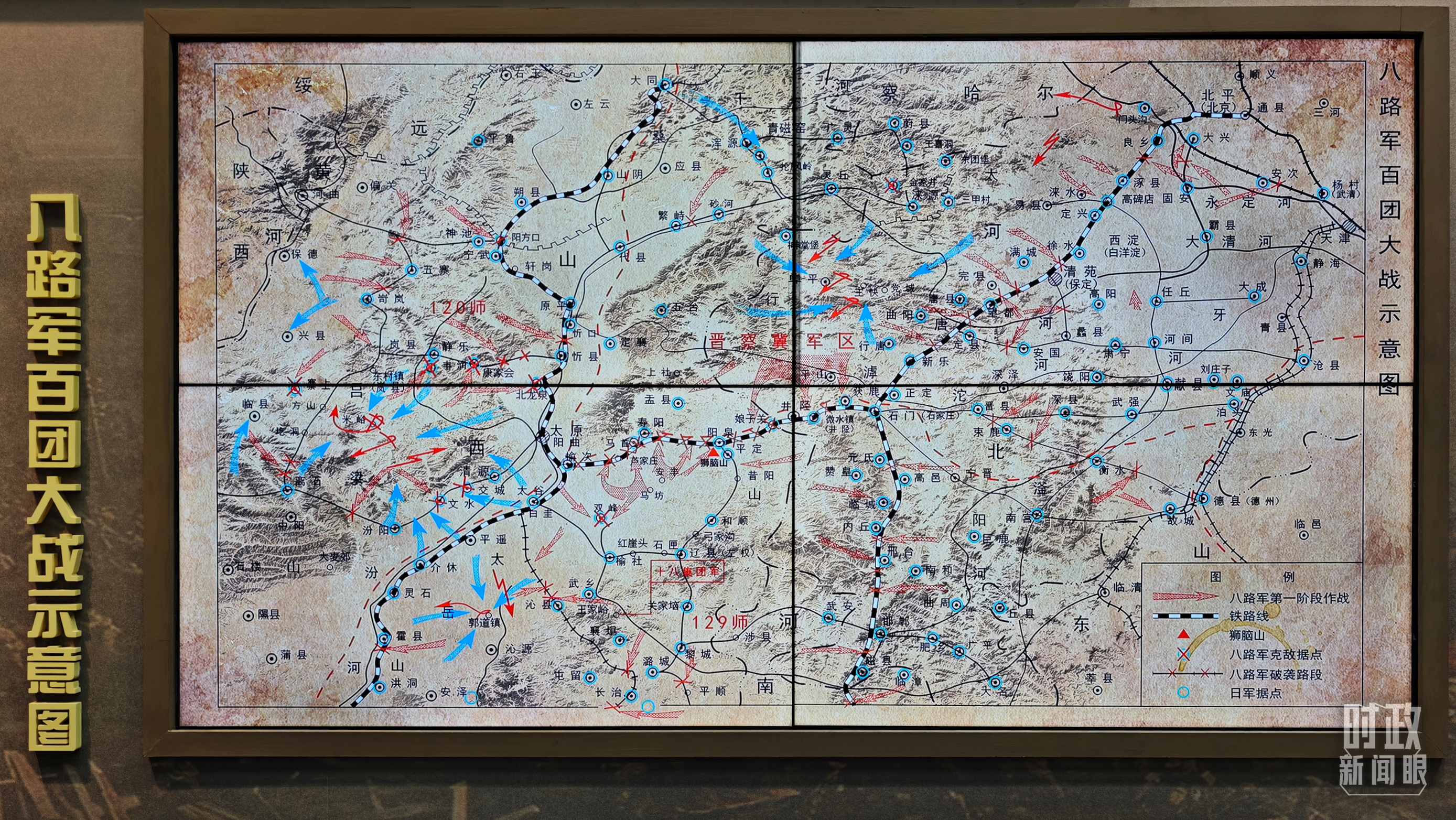 百團大戰(zhàn)紀念館展陳——八路軍百團大戰(zhàn)示意圖。(總臺央視記者許永松拍攝)