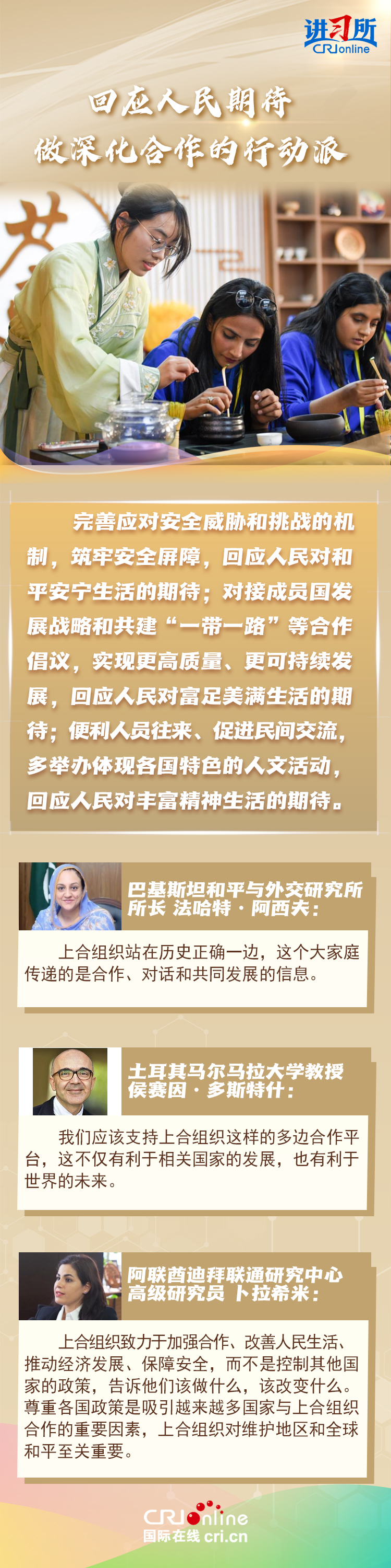 “讓‘上海精神’持續(xù)照亮構(gòu)建上海合作組織命運共同體之路?!鄙虾:献鹘M織成立24年來,始終秉持“上海精神”,成功走出了一條順應(yīng)時代潮流、契合各方需求的區(qū)域合作道路,樹立起新型國際關(guān)系的典范。在國際人士眼中,上海合作組織站在歷史正確一邊,致力于建設(shè)一個更加平等,更加包容,更加公平公正的世界,對維護地區(qū)和全球和平至關(guān)重要。