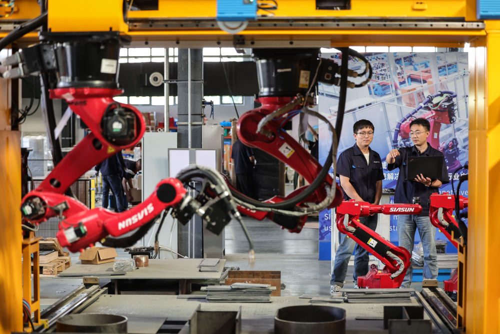 2024年6月3日,沈陽新松機器人自動化股份有限公司的機器人研發(fā)工程師討論智能焊接機器人平臺焊接方案。機器人工程技術人員作為人力資源和社會保障部2022年6月公布的18個新職業(yè)之一,在研發(fā)設計機器人工作中扮演著重要角色。讓“鐵疙瘩”聽懂話、干對活,是他們的重要工作內容。