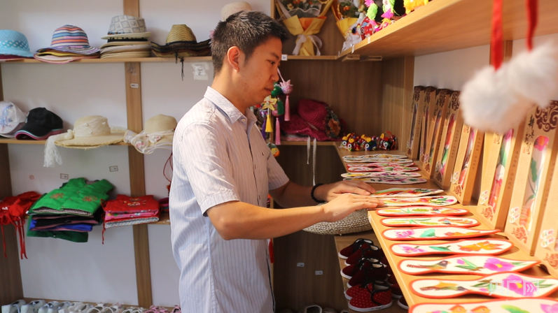 從外地返鄉(xiāng)的“90后”扶銀廷和妻子,在田鋪大塆創(chuàng)辦了一家“文創(chuàng)工坊”。“像鞋墊、虎頭枕、虎頭帽這些手工制品,都是我們當(dāng)?shù)匾恍├先恕⒋蠼闶止ぷ龅?。這些特色的文創(chuàng)產(chǎn)品既能讓游客了解當(dāng)?shù)乇就廖幕衷黾恿舜迕袷杖?。”扶銀廷說(shuō)。