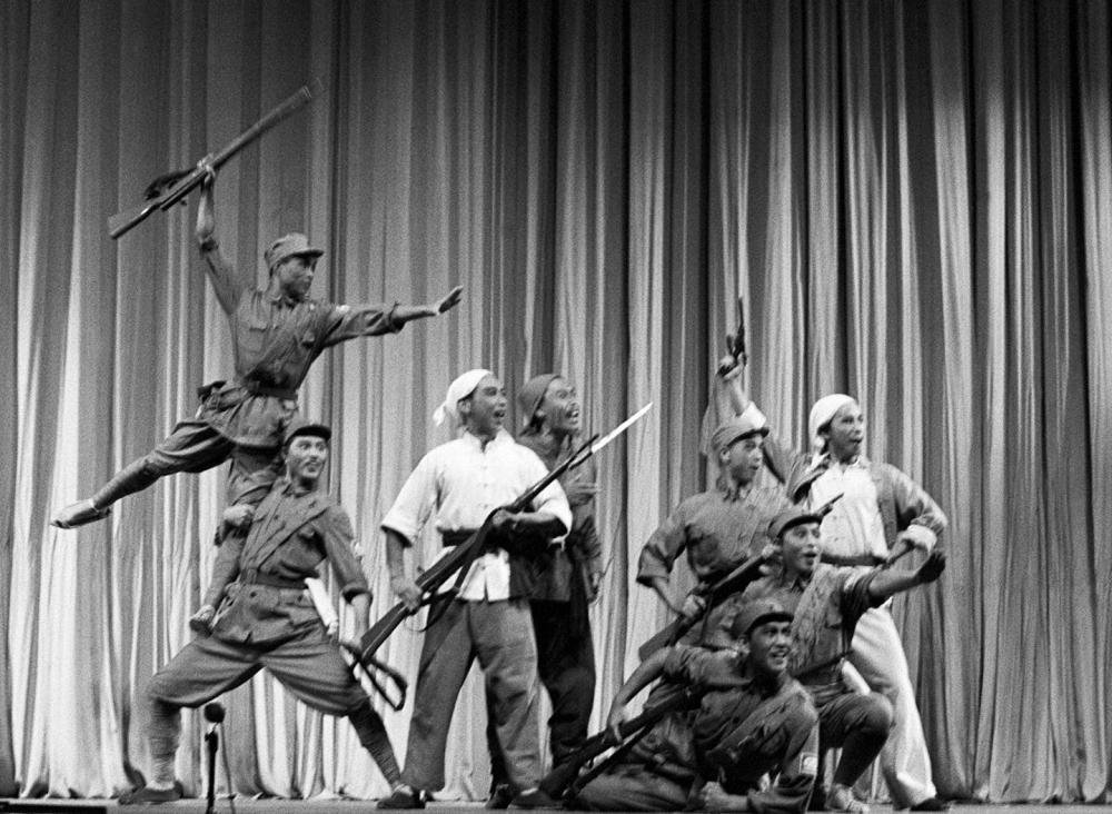 1965年,在北京舉行的紀(jì)念偉大抗日戰(zhàn)爭(zhēng)勝利20周年演出音樂(lè)會(huì)上,中國(guó)歌劇舞劇院演員表演《牛永貴負(fù)傷》,反映抗日戰(zhàn)爭(zhēng)中血肉相連的軍民關(guān)系。