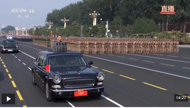 在雄壯的軍樂聲中,習(xí)近平乘車沿著寬闊的長安街,依次檢閱徒步方隊(duì)和裝備方隊(duì)。