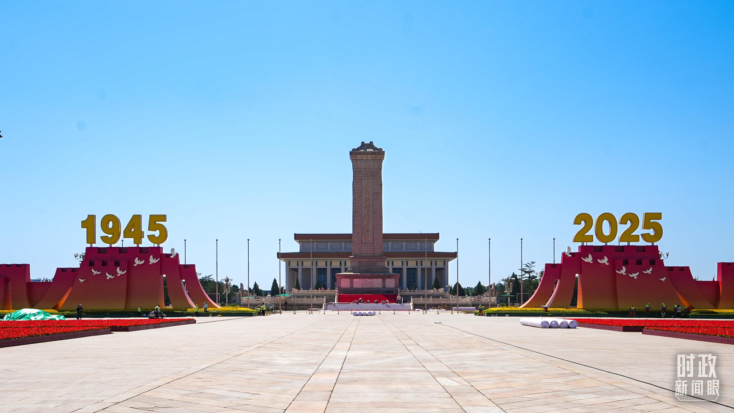 △即將迎來(lái)紀(jì)念中國(guó)人民抗日戰(zhàn)爭(zhēng)暨世界反法西斯戰(zhàn)爭(zhēng)勝利80周年大會(huì)的天安門(mén)廣場(chǎng)。(總臺(tái)央視記者范鑫拍攝)