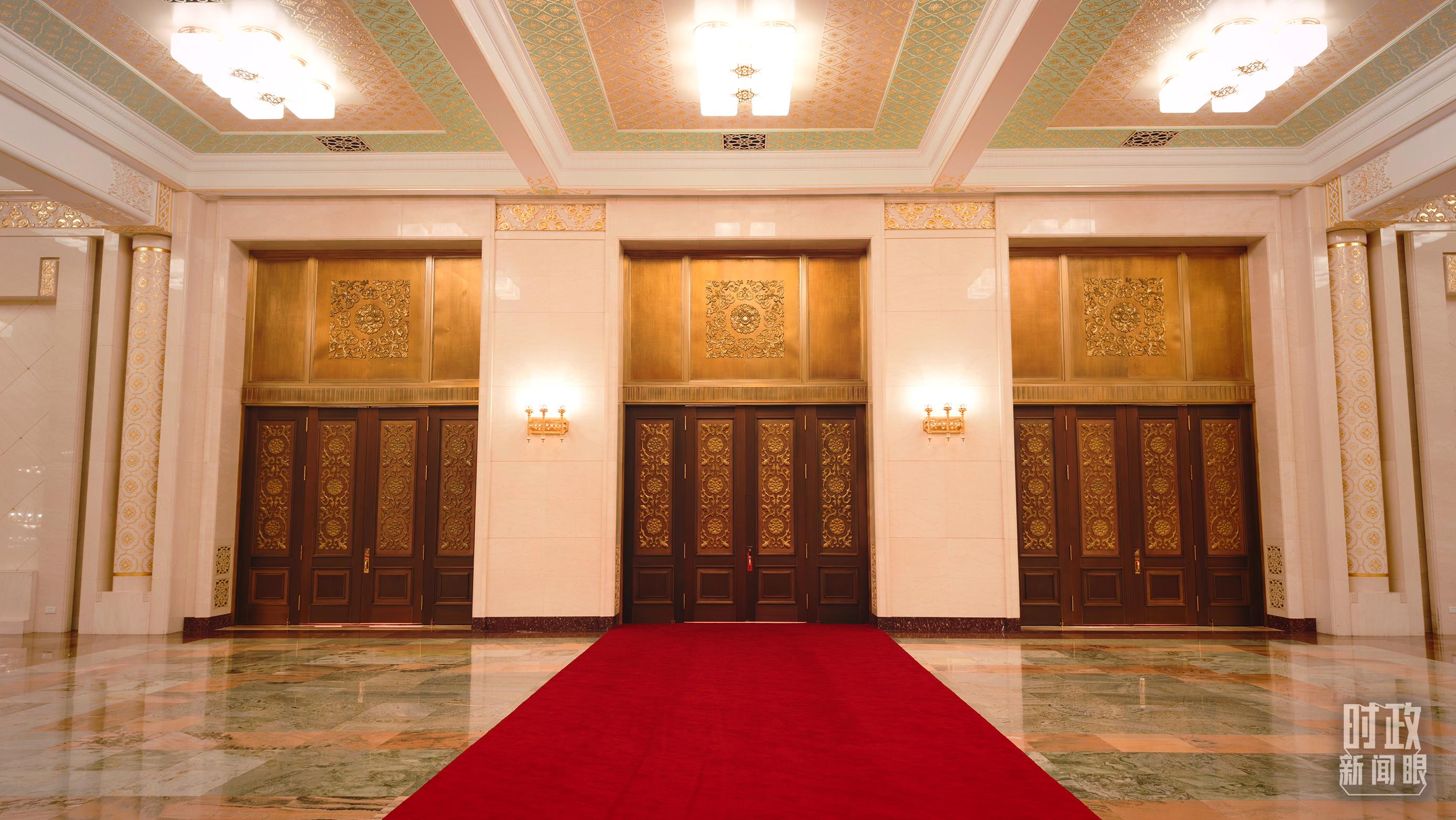△人民大會(huì)堂東大廳。(總臺(tái)央視記者鄂介甫拍攝)