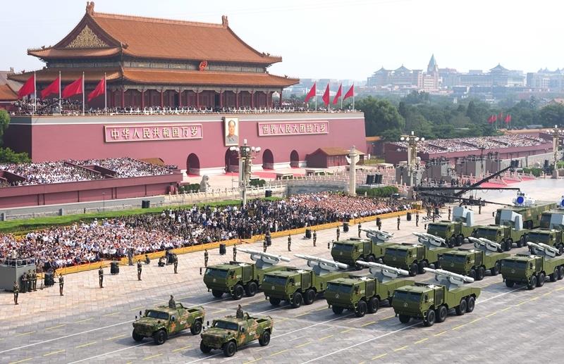 2025年9月3日,紀(jì)念中國人民抗日戰(zhàn)爭(zhēng)暨世界反法西斯戰(zhàn)爭(zhēng)勝利80周年大會(huì)在北京隆重舉行。這是艦載防空武器方隊(duì)接受檢閱。