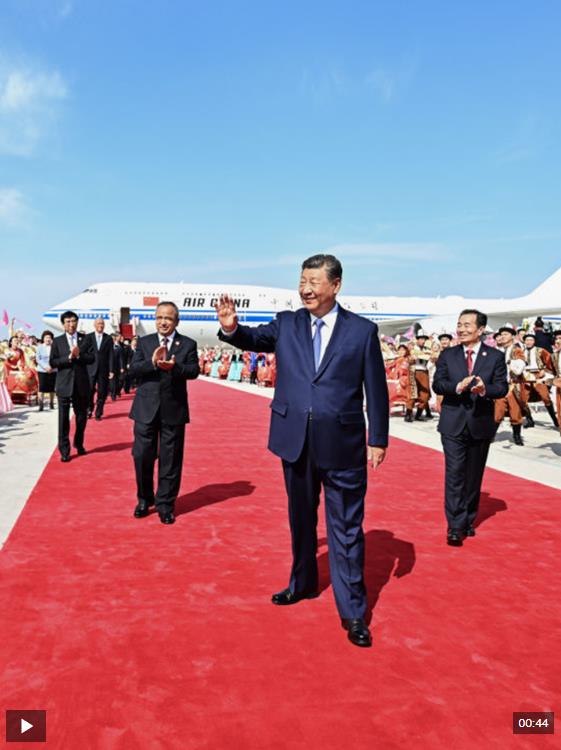 中共中央總書(shū)記、國(guó)家主席、中央軍委主席習(xí)近平率中央代表團(tuán)23日下午乘專(zhuān)機(jī)抵達(dá)烏魯木齊,出席新疆維吾爾自治區(qū)成立70周年慶?;顒?dòng)。習(xí)近平等在機(jī)場(chǎng)和烏魯木齊市區(qū)受到新疆各族群眾的熱烈歡迎。