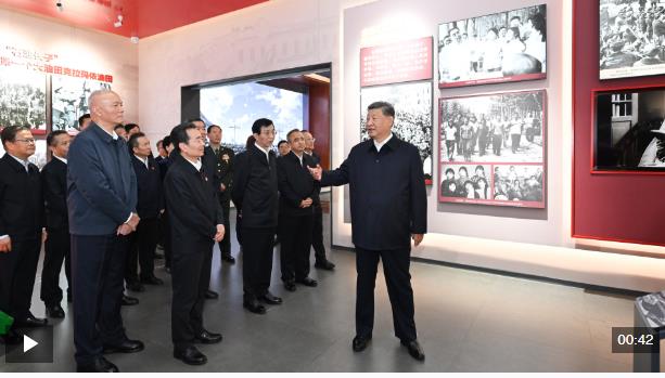 24日上午,習近平總書記在烏魯木齊文化中心展覽館參觀新疆維吾爾自治區(qū)成立70周年主題成就展。該展覽全景展現(xiàn)了70年來在中國共產黨堅強領導下、在全國各地大力支援下,新疆各族人民團結一心、艱苦奮斗、頑強拼搏取得的輝煌成就。