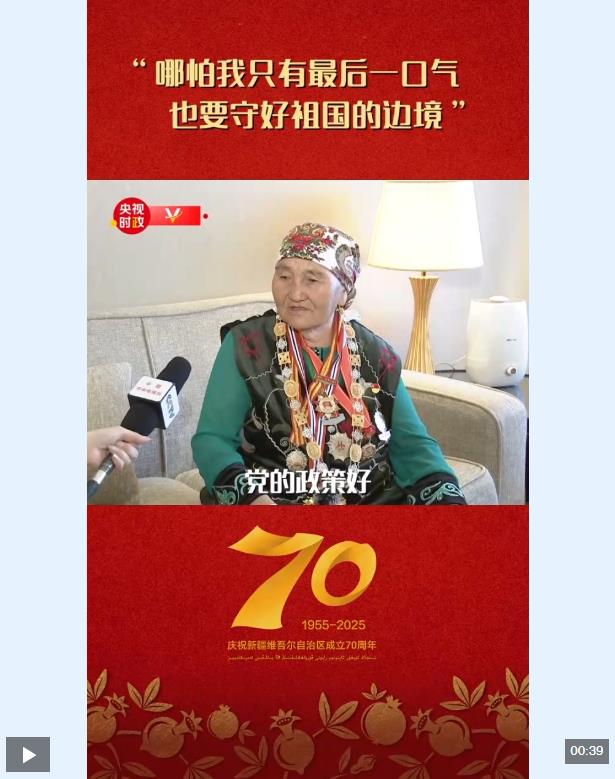 “人民楷?!眹覙s譽(yù)稱號(hào)獲得者布茹瑪汗·毛勒朵表達(dá)了她最想對總書記說的話:“我從19歲開始守邊護(hù)邊,哪怕我只有最后一口氣,也要守好祖國的邊境。”