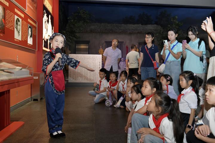 2025年8月7日,在山東省臨沂市沂蒙革命紀(jì)念館,沂蒙紅孩子文藝先鋒隊(duì)的房沫昕在講述紅色故事《沂蒙紅嫂祖秀蓮》。2024年9月,位于沂蒙革命老區(qū)的山東省臨沂市以“傳承沂蒙精神”為宗旨組建沂蒙紅孩子文藝先鋒隊(duì),通過(guò)歌舞、朗誦、故事講述、舞臺(tái)劇等紅色主題文藝節(jié)目,增強(qiáng)紅色文化感染力,不斷為紅色基因代代相傳注入新生力量。2025年5月12日,云南省昭通市威信縣第一中學(xué)學(xué)生在大屏上紅色研學(xué)實(shí)踐基地體驗(yàn)編織草鞋。200余名學(xué)生在紅色研學(xué)實(shí)踐基地親手編織草鞋、制作蠟染,并參觀了扎西會(huì)議舊址、紅軍長(zhǎng)征過(guò)云南情景體驗(yàn)館,在實(shí)踐互動(dòng)中重溫紅色革命歷史。威信縣立足紅色文化資源優(yōu)勢(shì),先后建成扎西會(huì)議紀(jì)念館、紅軍長(zhǎng)征標(biāo)語(yǔ)館等紅色文化展館,以舊址遺跡為“教室”,以文物史料為“教材”,設(shè)計(jì)開(kāi)發(fā)多門精品研學(xué)課程和線路,在深入開(kāi)展紅色研學(xué)系列活動(dòng)中傳承紅色基因。
