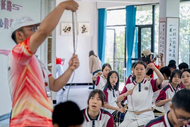 2025年9月26日,內(nèi)蒙古興安盟科右中旗巴彥呼舒第六中學(xué)美術(shù)教師、非遺代表性傳承人吳斯琴(左四)指導(dǎo)學(xué)生刺繡。近年來(lái),內(nèi)蒙古興安盟科爾沁右翼中旗巴彥呼舒第六中學(xué)將當(dāng)?shù)貒?guó)家級(jí)非遺圖什業(yè)圖刺繡引入校園,開(kāi)設(shè)校本課程,并成立興趣社團(tuán),在豐富校園文化生活的同時(shí),讓學(xué)生們近距離感受非遺的魅力,弘揚(yáng)和傳承中華優(yōu)秀傳統(tǒng)文化。隨著國(guó)產(chǎn)動(dòng)畫電影《哪吒之魔童鬧海》不斷刷新中國(guó)影史票房紀(jì)錄,參與電影配樂(lè)的貴州省榕江縣三寶侗寨的楊想妮和“舞樂(lè)蟬歌”團(tuán)隊(duì)為更多人所熟知。樂(lè)團(tuán)成員懷揣“用音樂(lè)傳遞侗族文化,讓世界聽(tīng)見(jiàn)侗族大歌”的共同夢(mèng)想,將侗族大歌推向更廣闊的舞臺(tái)。這是2025年4月22日,楊想妮在貴州省黎平縣肇興鎮(zhèn)廈格侗寨教前來(lái)研學(xué)的孩子們唱侗歌。