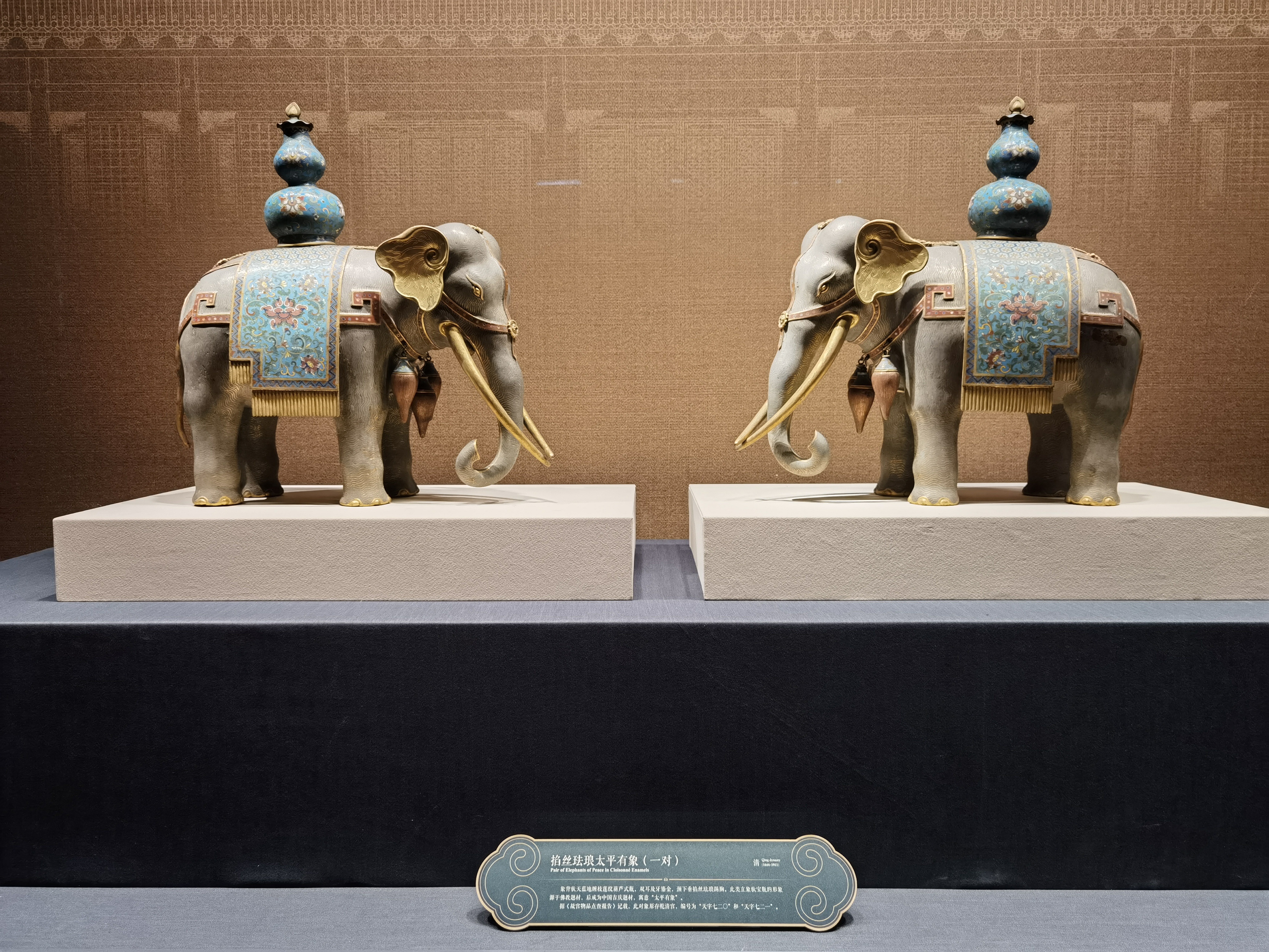 故宮展出的掐絲琺瑯太平有象。(總臺央視記者程愛華拍攝)