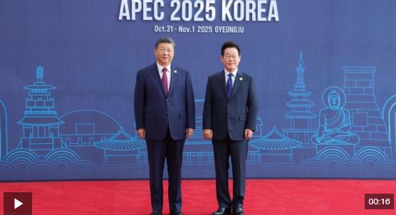 習近平主席抵達時,韓國總統(tǒng)李在明熱情迎接。兩國元首握手、合影,留下珍貴的“APEC瞬間”。隨后,兩位領(lǐng)導人微笑交談,共同步入會場。
