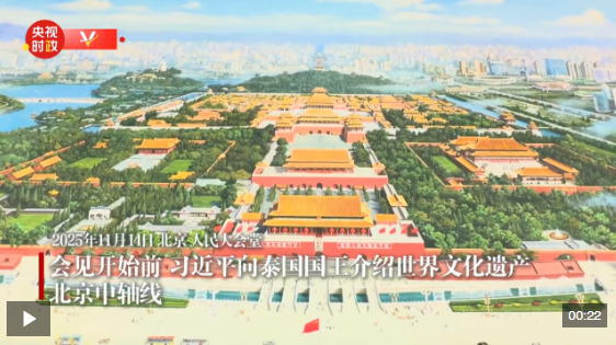 會(huì)見開始前,習(xí)近平向泰國(guó)國(guó)王介紹世界文化遺產(chǎn)——北京中軸線。