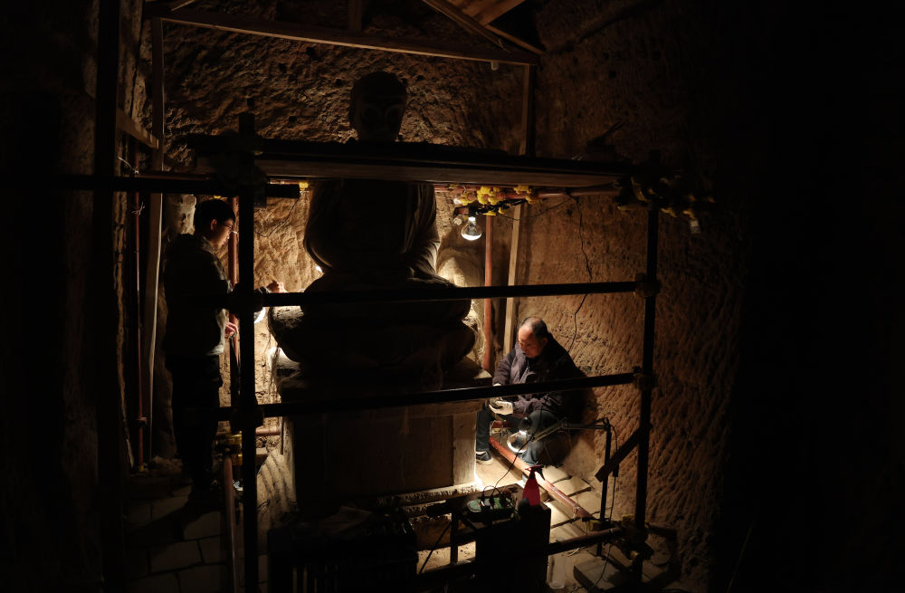 2024年11月2日,麥積山石窟藝術研究所保護研究室的文物修復師何舉在麥積山石窟133窟內(nèi)修復塑像。近年來,麥積山石窟藝術研究所等文物保護部門持續(xù)加大對麥積山石窟的搶救性保護和預防性保護工作力度,積極探索現(xiàn)代科學技術手段與傳統(tǒng)文物修復技藝相結合的保護修復新路徑。截至目前,麥積山石窟已有80個洞窟完成整體保護修復工作。
