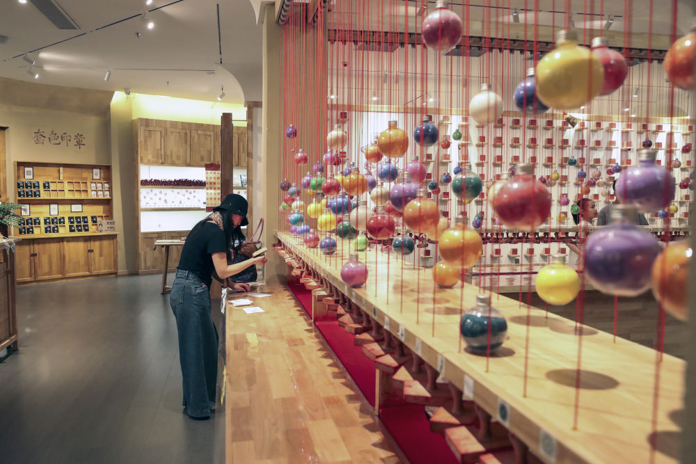 2025年5月10日,游客在敦煌文旅新打卡地敦煌印局體驗文創(chuàng)印章。