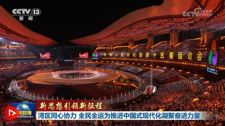 央視網(wǎng)消息(新聞聯(lián)播):習(xí)近平總書記近日在廣東考察并出席第十五屆全運(yùn)會(huì)開幕式時(shí)指出,通過舉辦這場盛會(huì),可以激發(fā)愛國熱情,拉緊精神紐帶,促進(jìn)開放合作、互利共贏,為大灣區(qū)建設(shè)營造良好氛圍。從11月9日至21日,由粵港澳三地共同舉辦的這屆全運(yùn)會(huì),燃動(dòng)大灣區(qū),生動(dòng)詮釋體育的激情與魅力;三地同心協(xié)力、交流融合,讓大灣區(qū)煥發(fā)新的光彩。11月21日晚,本屆全運(yùn)會(huì)閉幕。這屆盛會(huì)不僅展示了新時(shí)代中國體育事業(yè)發(fā)展的新成就,也生動(dòng)展現(xiàn)了中國式現(xiàn)代化在粵港澳大灣區(qū)的萬千氣象。