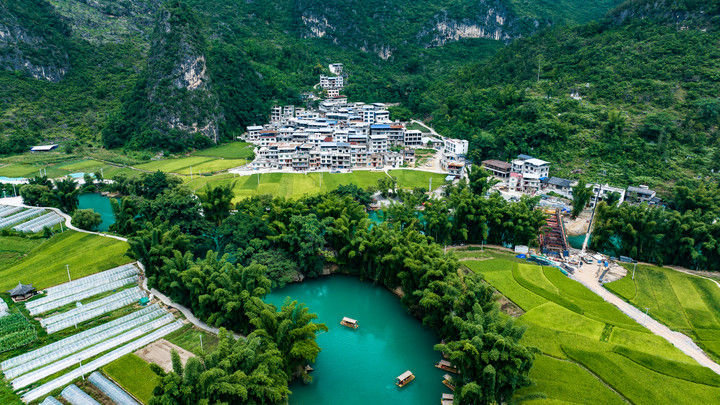 游客乘船游玩貴州省羅甸縣沫陽鎮(zhèn)大小井景區(qū)(2025年8月12日攝,無人機(jī)照片)。通過不斷升級(jí)基礎(chǔ)設(shè)施、優(yōu)化服務(wù)體系,羅甸縣以旅居康養(yǎng)為特色,將豐富的山水資源轉(zhuǎn)化為旅游優(yōu)勢(shì),讓“享玩水 趣羅甸”成為夏日品牌,推動(dòng)全域旅游高質(zhì)量發(fā)展。