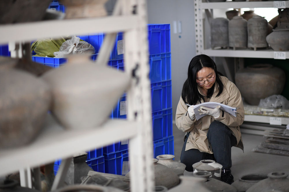 2024年3月5日,陜西省考古研究院女子考古隊(duì)隊(duì)員張佳楊在文物庫(kù)房登記文物信息。成立于2020年的女子考古隊(duì)先后完成包括蔣劉仰韶晚期環(huán)壕聚落、大堡子西漢陵邑墓地等重要發(fā)現(xiàn)在內(nèi)的基本建設(shè)考古項(xiàng)目數(shù)十項(xiàng)。