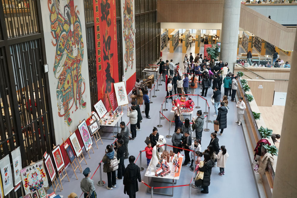 2025年1月1日,觀(guān)眾在位于西安的陜西省圖書(shū)館高新館區(qū)內(nèi)參觀(guān)一場(chǎng)非遺文化展覽。西安市持續(xù)推出各類(lèi)主題和形式的公共文化活動(dòng),為市民、游客提供豐富的精神文化生活。