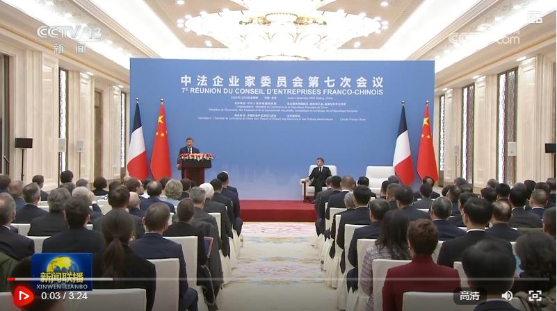 12月4日中午,國家主席習(xí)近平在北京同法國總統(tǒng)馬克龍共同出席中法企業(yè)家委員會第七次會議閉幕式并致辭。