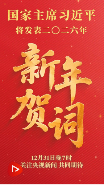 31日晚7時,國家主席習(xí)近平將通過中央廣播電視總臺和互聯(lián)網(wǎng),發(fā)表二〇二六年新年賀詞。