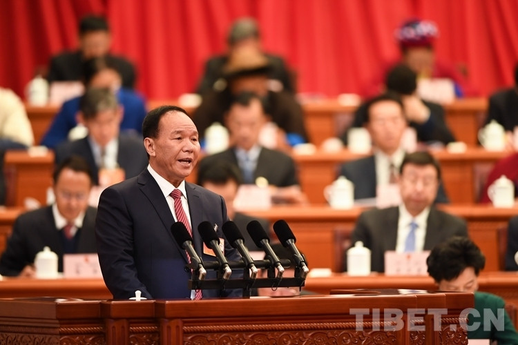 圖為齊扎拉主席作政府工作報告 攝影:何蓬磊