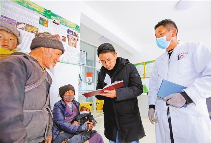 當選十三屆全國人大代表以來,西藏山南市瓊結(jié)縣拉玉鄉(xiāng)黨委副書記江村,積極為農(nóng)牧區(qū)醫(yī)療衛(wèi)生事業(yè)發(fā)展出謀劃策。在基層調(diào)研中,他最關心的是醫(yī)療衛(wèi)生室硬件設施和醫(yī)護人員結(jié)構(gòu)等情況。在今年全國兩會上,江村將圍繞“加大對西藏基層醫(yī)療衛(wèi)生方面的支持力度”等提出建議。圖為江村(右二)深入拉玉鄉(xiāng)堆巴村衛(wèi)生室調(diào)研。記者 洛桑 次旺 攝